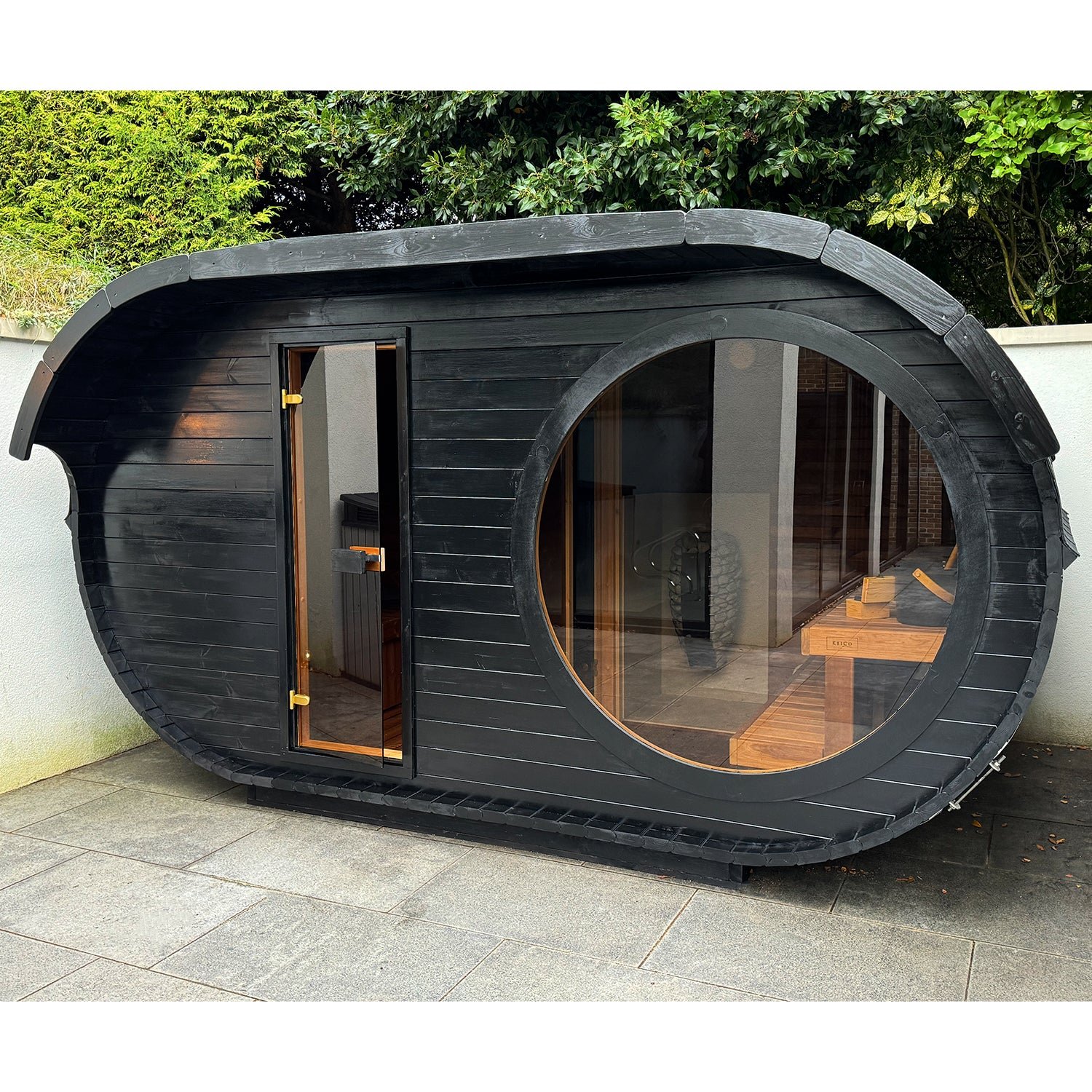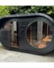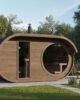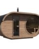 Ved å kombinere elegant design med full badstuekomfort, tilfører Oval Sauna Raiki en innbydende og organisk estetikk til uteområdet ditt. Den mykt avrundede formen glir harmonisk inn i hagen eller naturen rundt, samtidig som den skaper en varm og lun opplevelse innendørs.